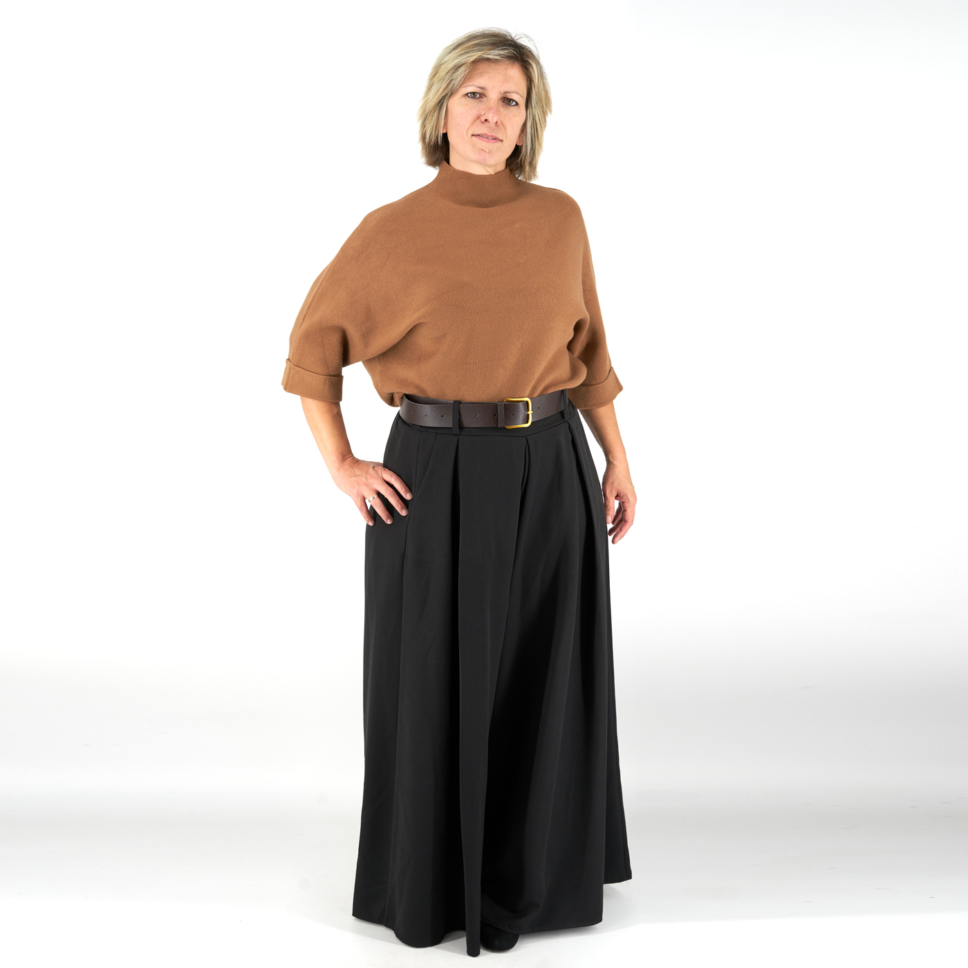 - 3/4-es ujjú, álló nyakú fazon