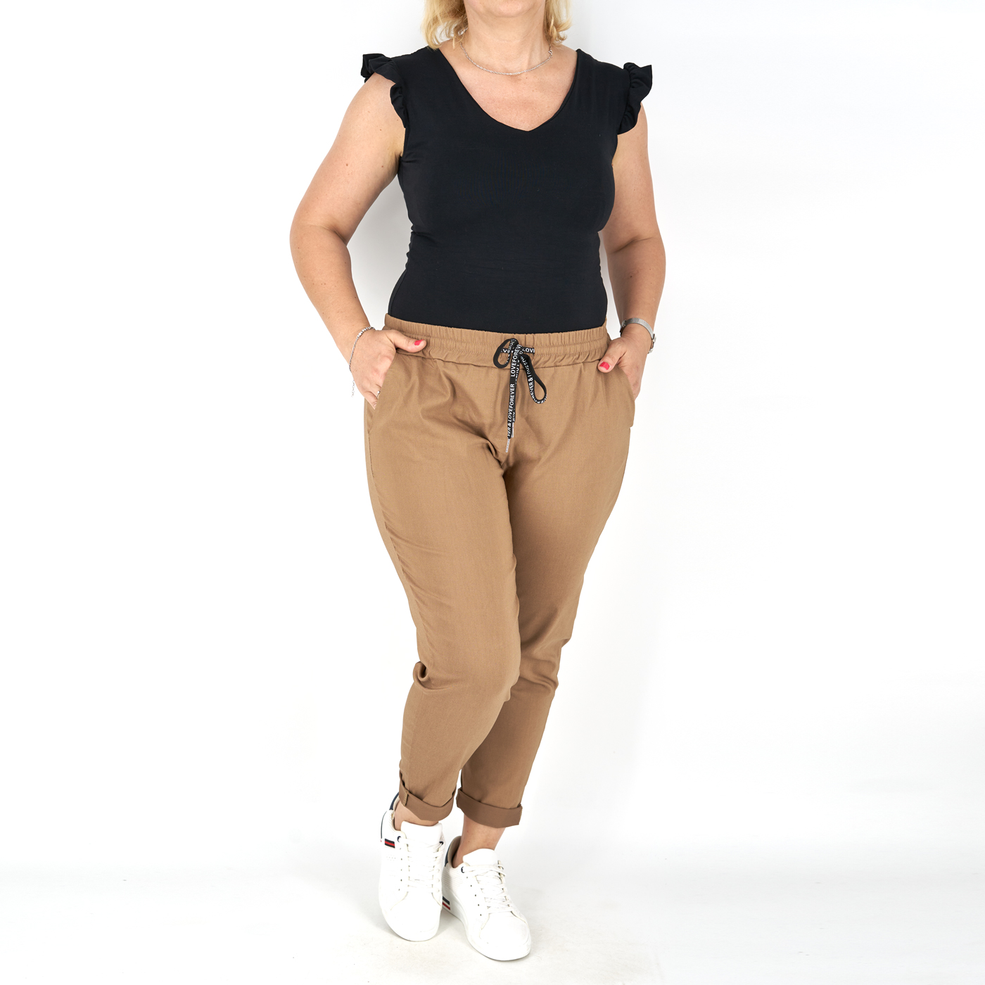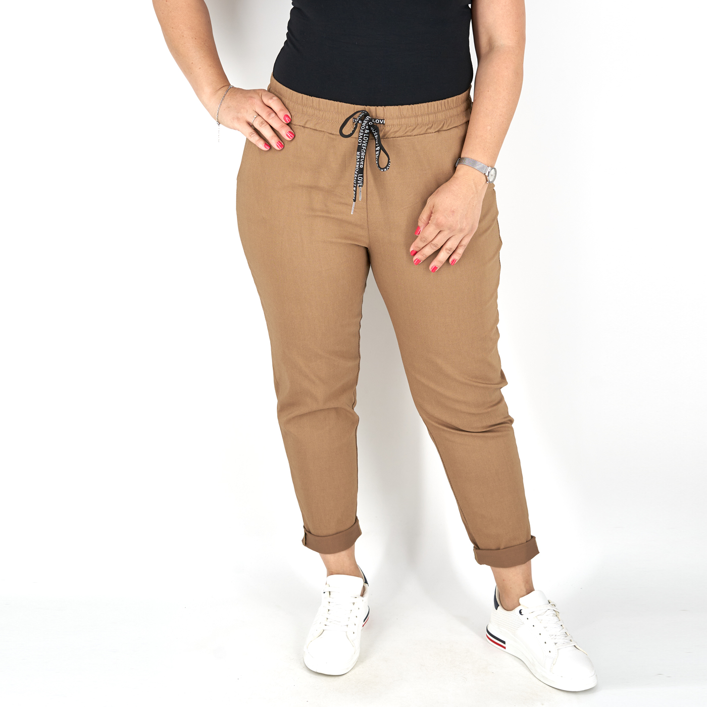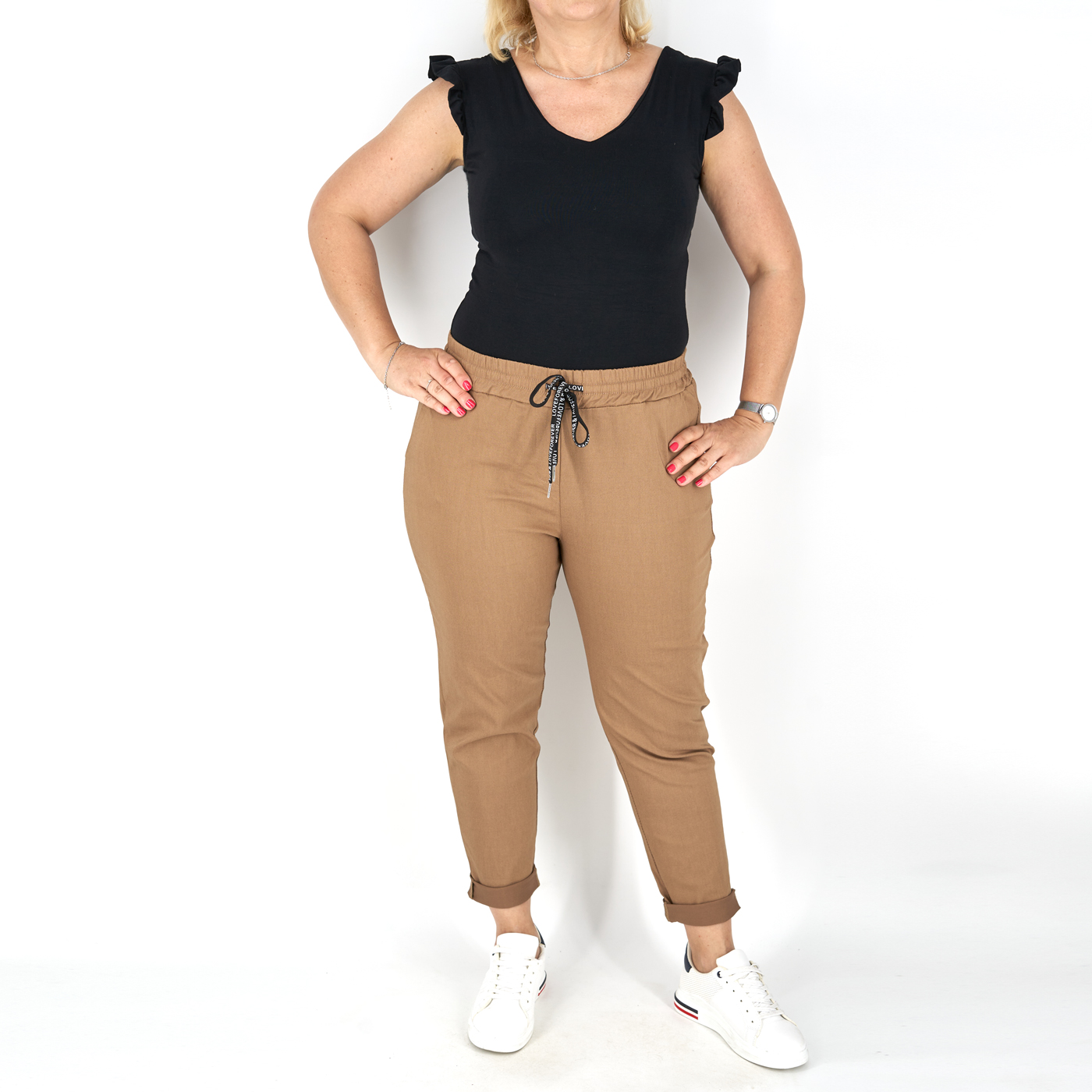 Gumis derekú, női sztreccs nadrág – N9108 – Bamboo (barna) termékről 2 értékelés