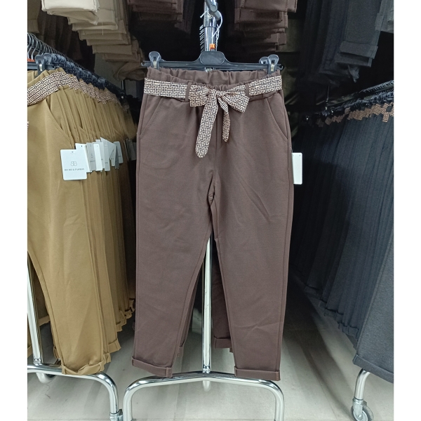 Gumis derekú őszi–téli női nadrág mintás övvel – N8922