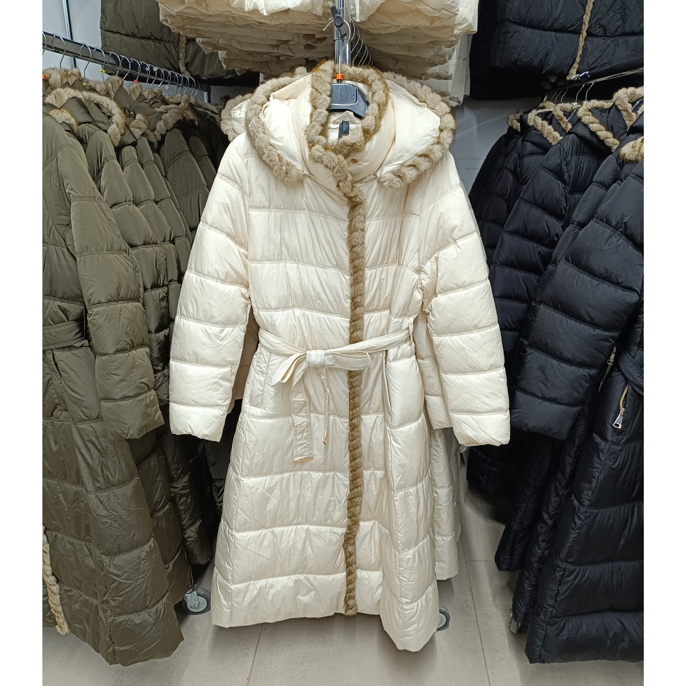 Hosszú, steppelt téli kabát – FLY-2919 – Ekrü