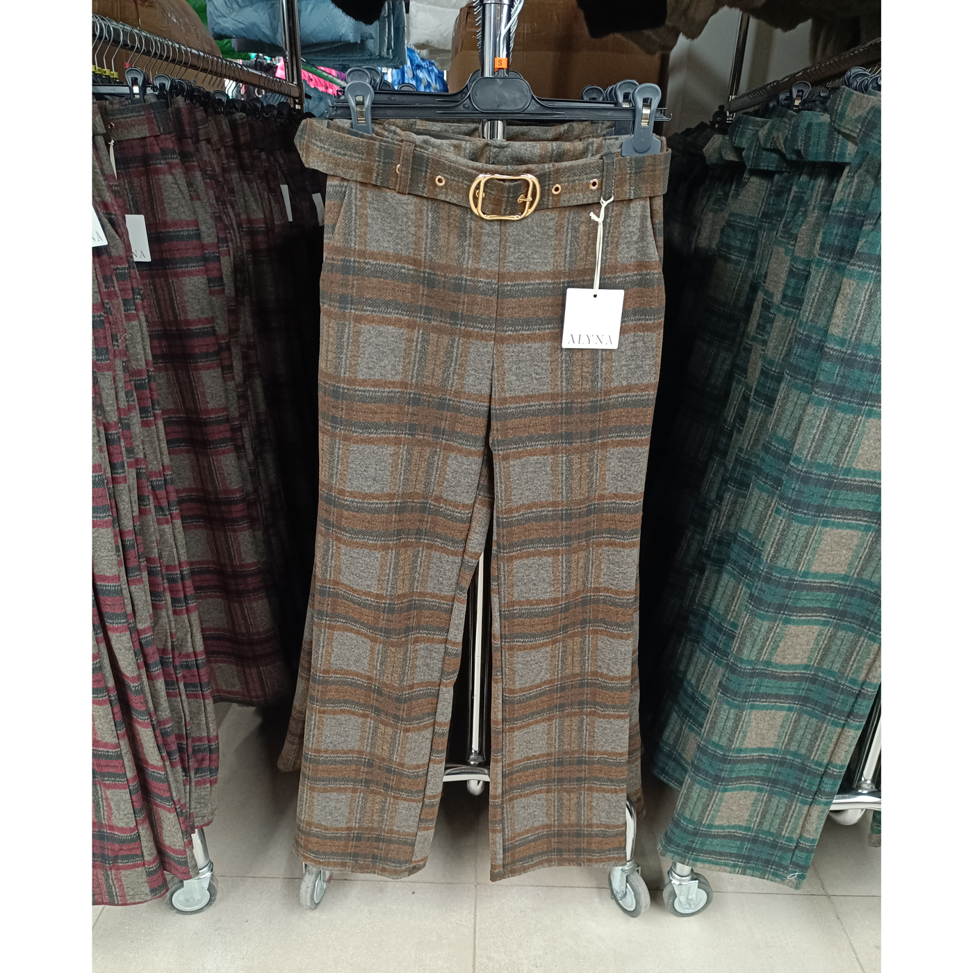 Elegáns, téli kockás női nadrág – meleg anyaggal és ajándék övvel