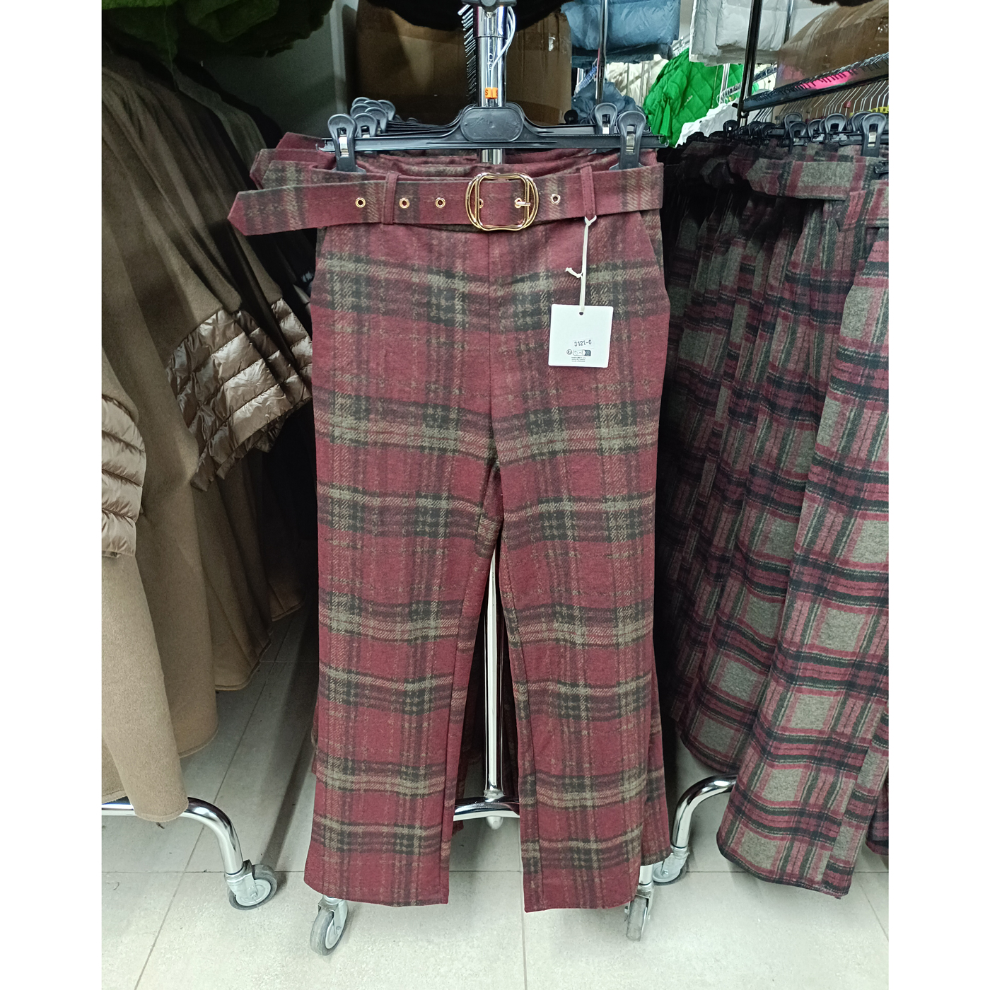 Magas derekú, elegáns női nadrág + öv – N3121 – Kockás – Bordó