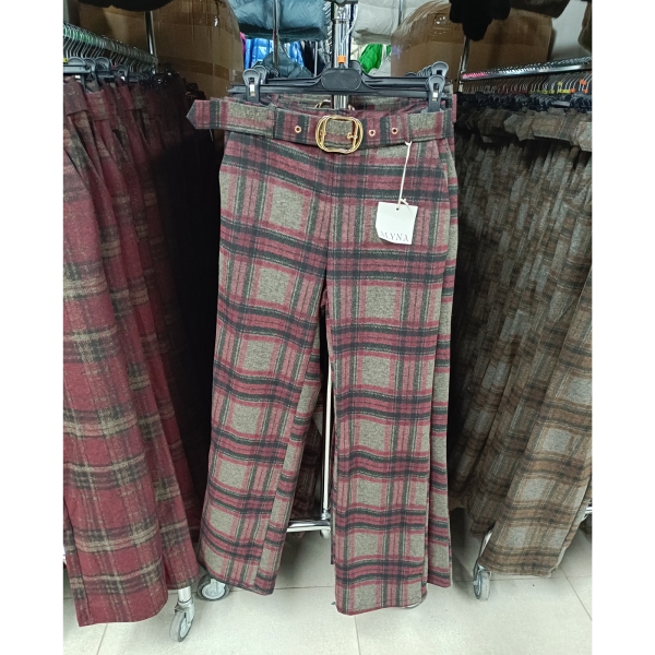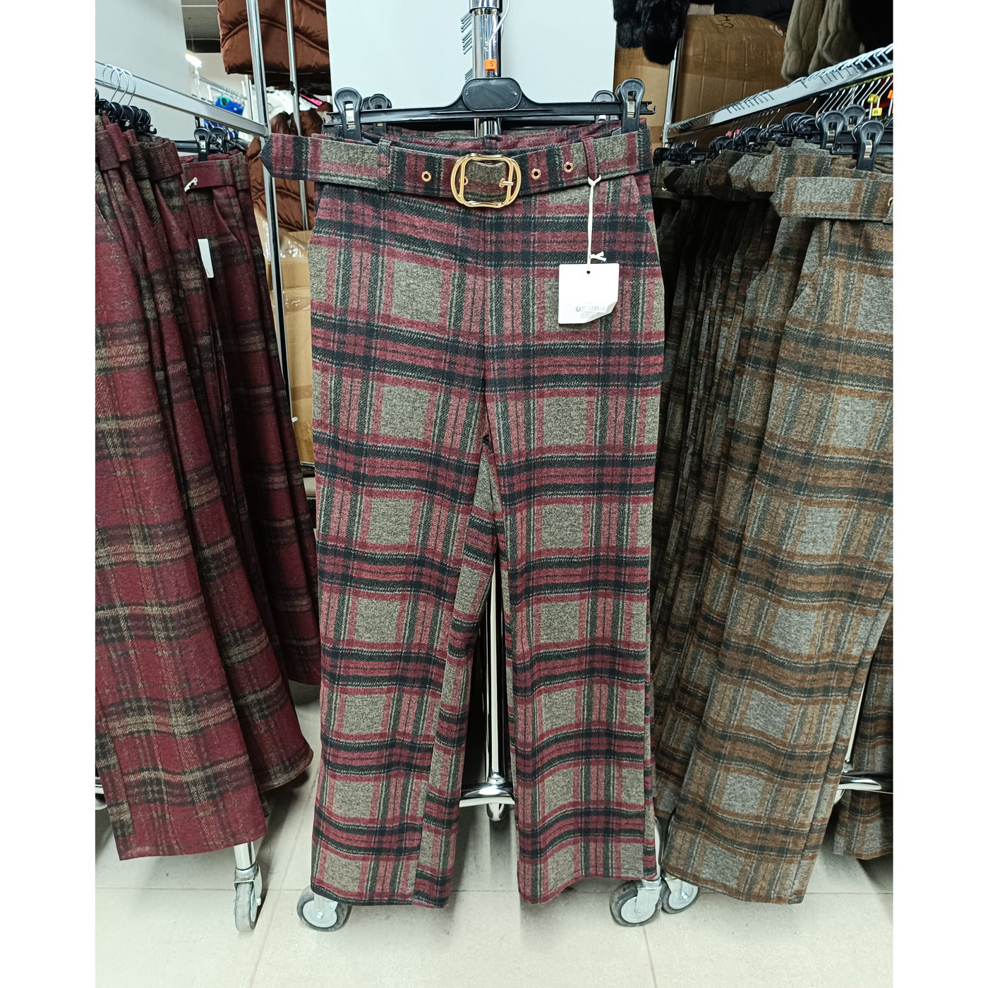 Elegáns, téli kockás női nadrág – meleg anyaggal és ajándék övvel