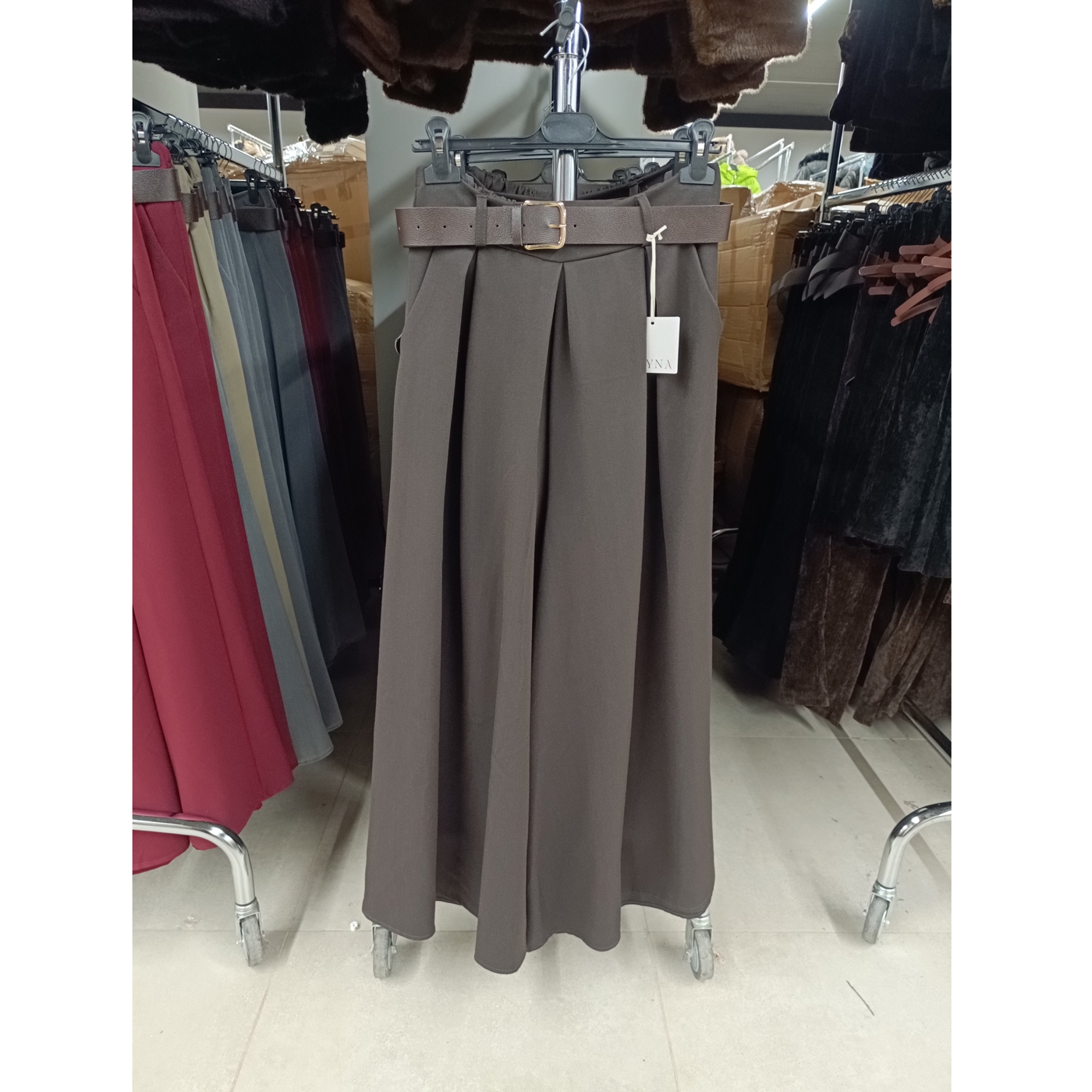 Magas derekú, hosszú szoknya nadrág + öv – ZP3397 – Csokibarna