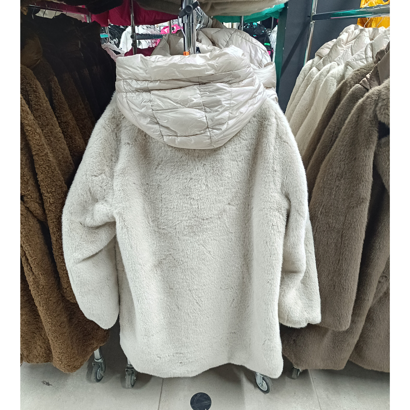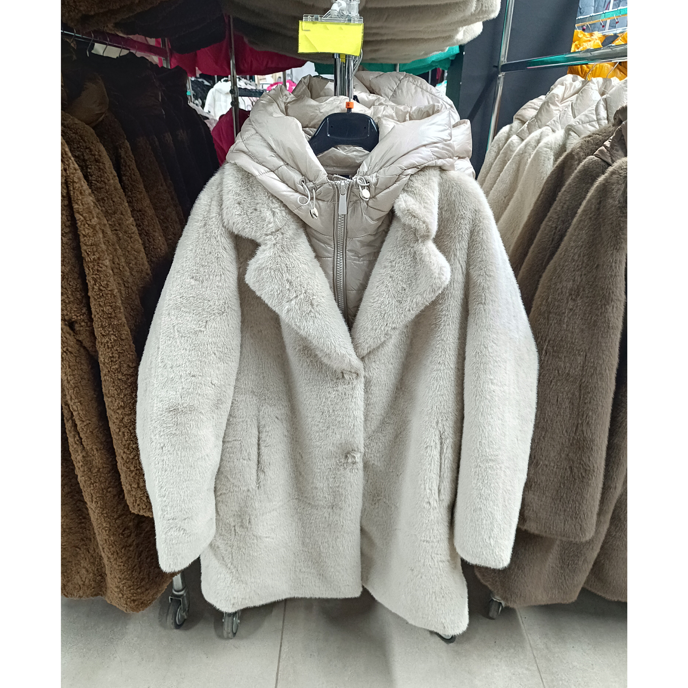 Trendy műszőrme kabát és steppelt mellény kombinációja ami egy igazán különleges megjelenés kölcsönöz. Belsejéből a steppelt mellény rész eltávolítható, ebben az esetben egy hagyományos bunda ként is hordható.