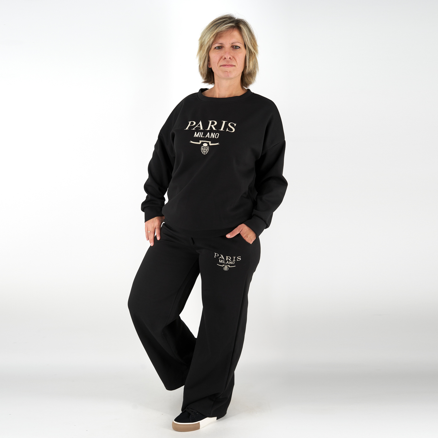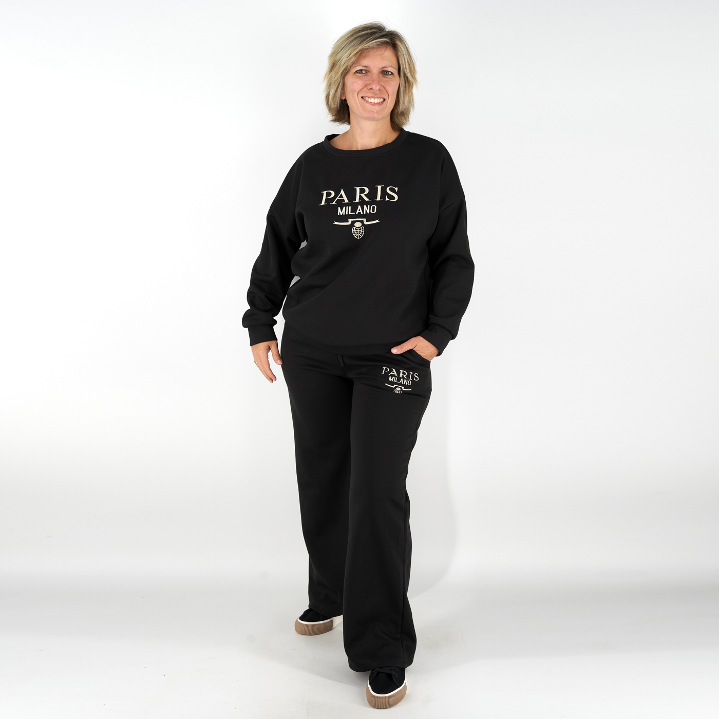 Női melegítő szett – „PARIS MILANO” hímzésel – M2587 – Fekete