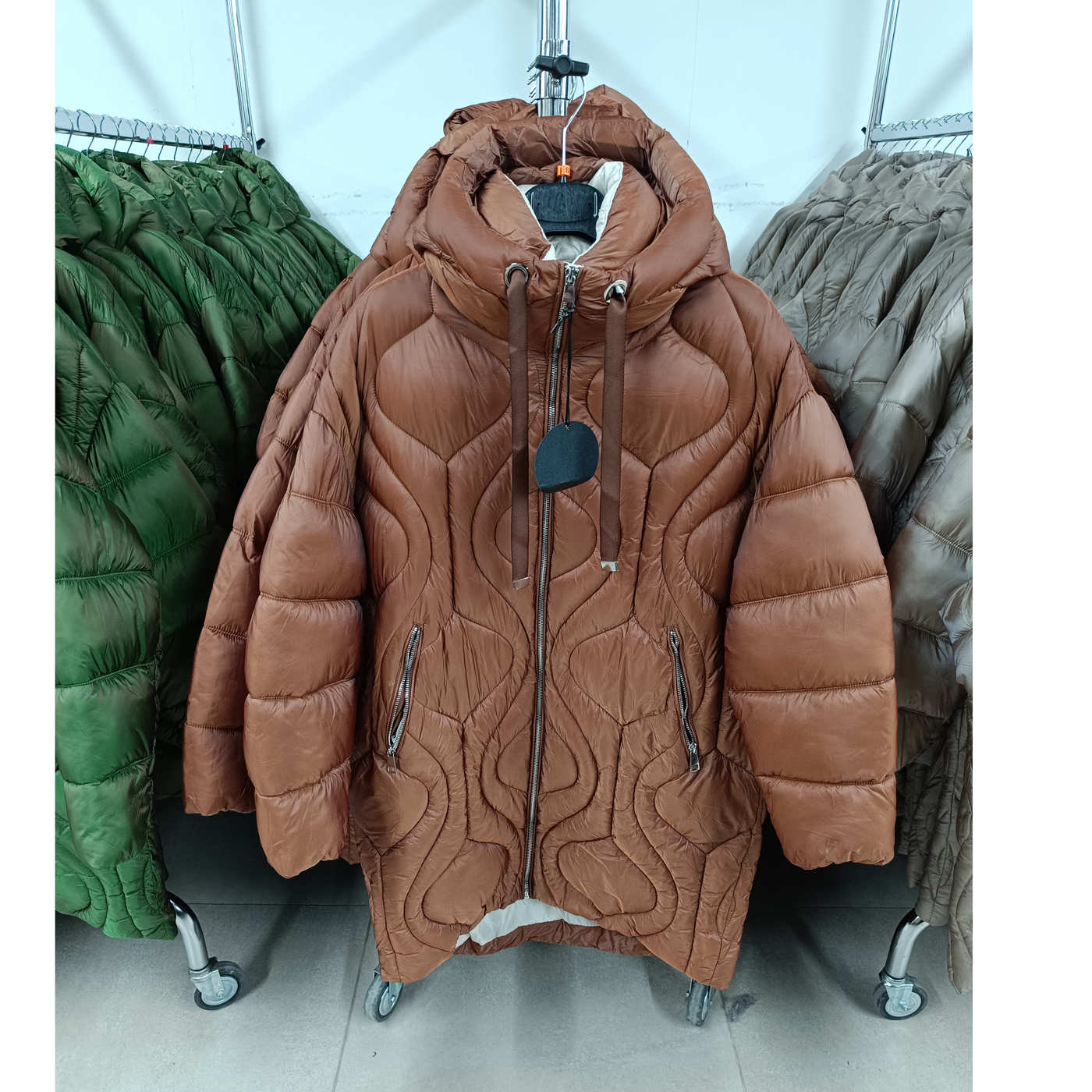 Női steppelt kabát, fix kapucnis – FLY-2960 – Barna