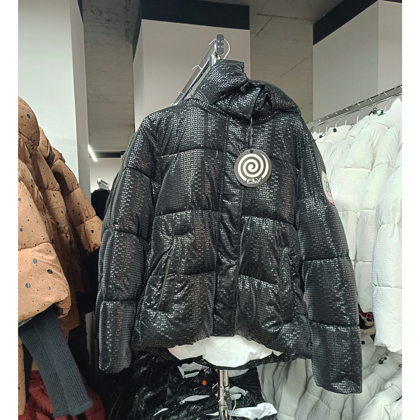 Női steppelt télikabát „INFINITY” – Hologramos – FLY-2587 – Fekete