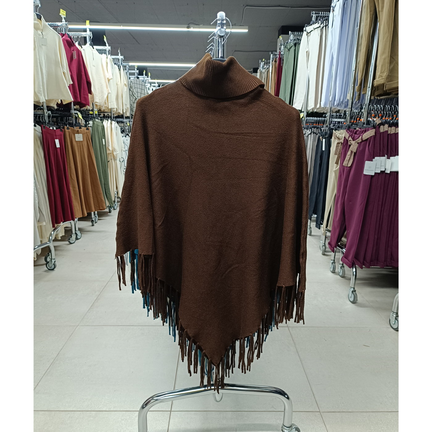 Puha tapintású női poncsó rojtokkal – F8213 – Barna