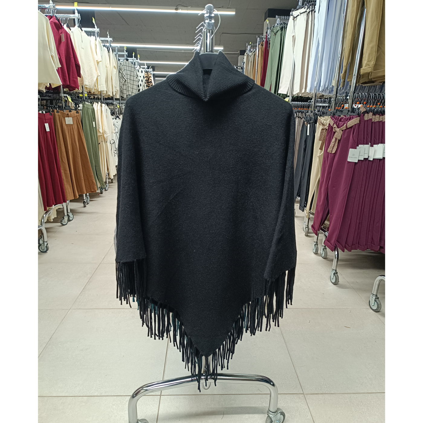Puha tapintású női poncsó rojtokkal – F8213 – Fekete