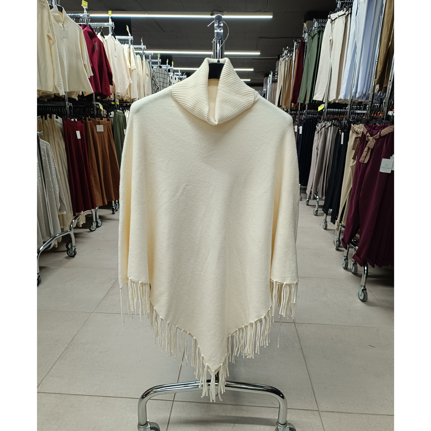 Puha tapintású női poncsó rojtokkal – F8213 – Vaj