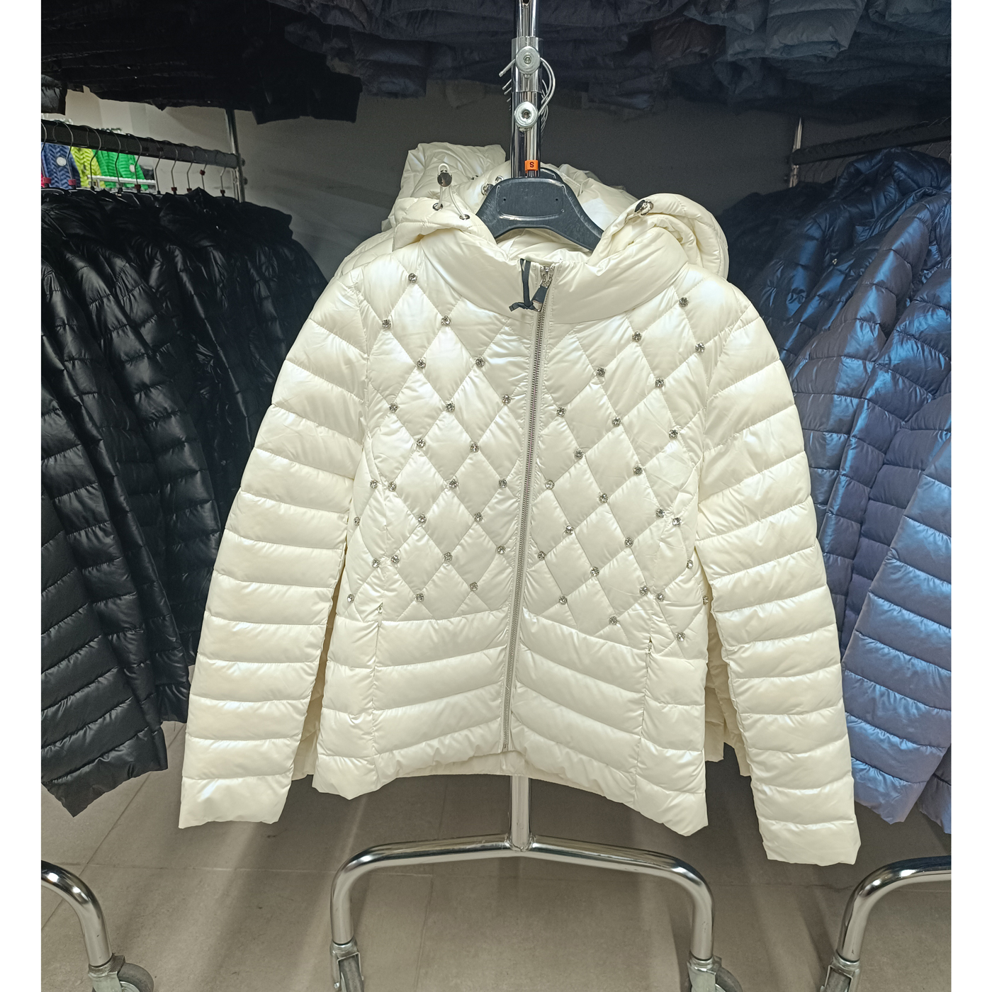 Steppelt átmeneti kabát, kövekkel díszített – FLY-2930 – Fehér