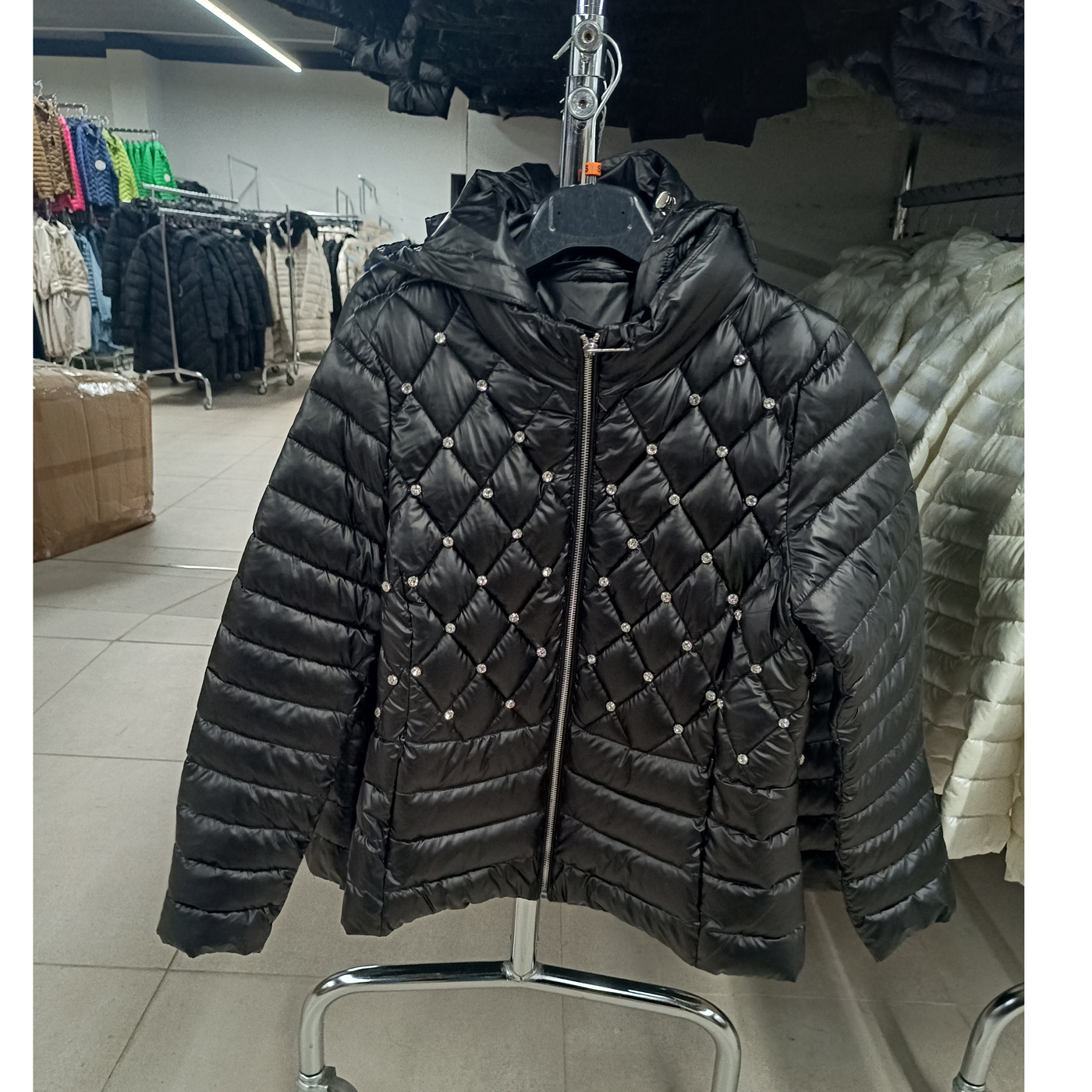 Steppelt átmeneti kabát, kövekkel díszített – FLY-2930 – Fekete
