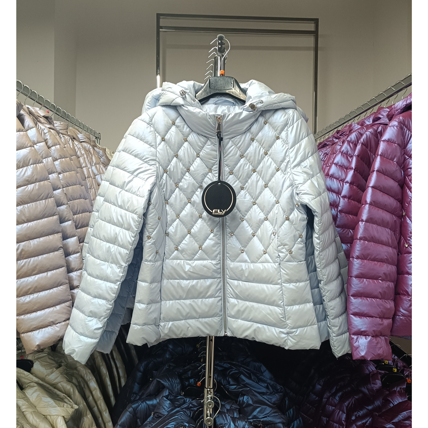 Steppelt átmeneti kabát, kövekkel díszített – FLY-2930 – Világoskék