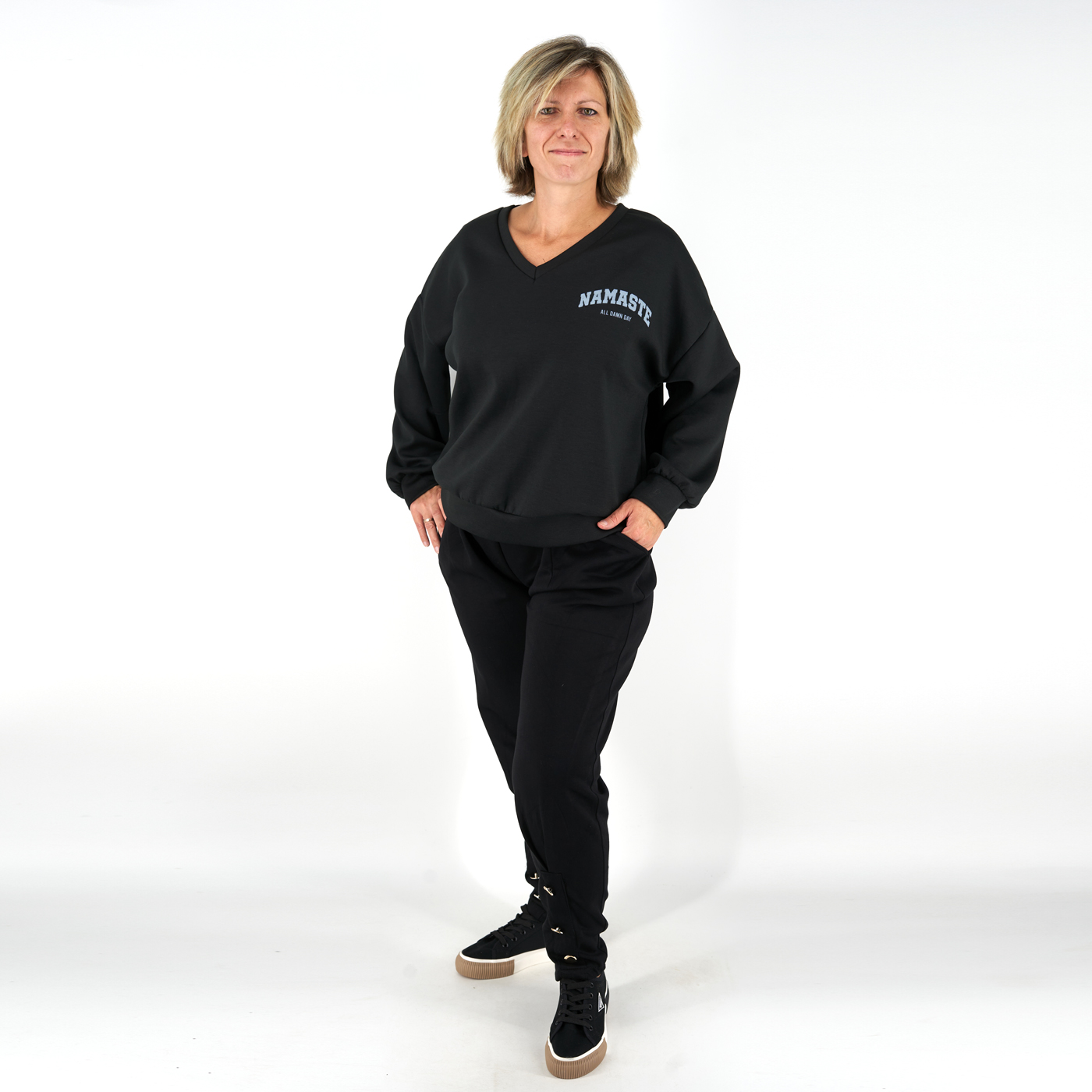 V-nyakú női felső (NAMASTE) – F2589 – Fekete